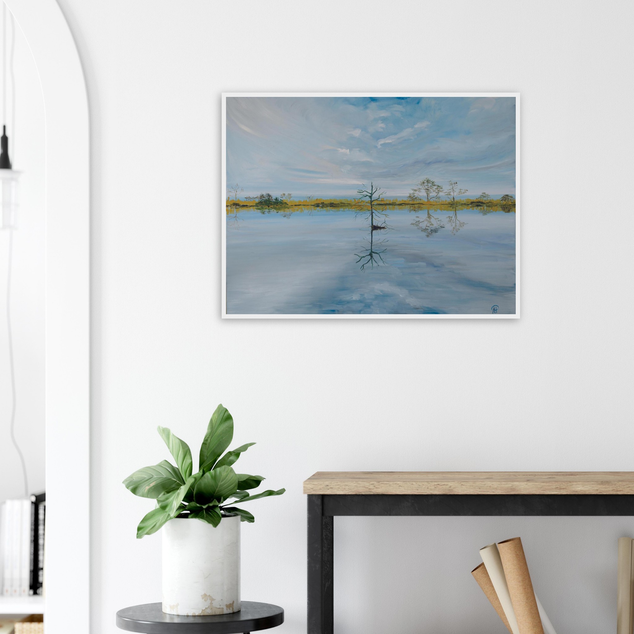 Transform your living space into a tranquil oasis with our stunning Winter Serenity Framed Poster. This original oil painting print features a solitary tree standing gracefully in serene waters, evoking a sense of calm and peace that nature lovers will adore. Perfect for any interior decor, this artwork enhances your home with winter colors that complement the season beautifully.